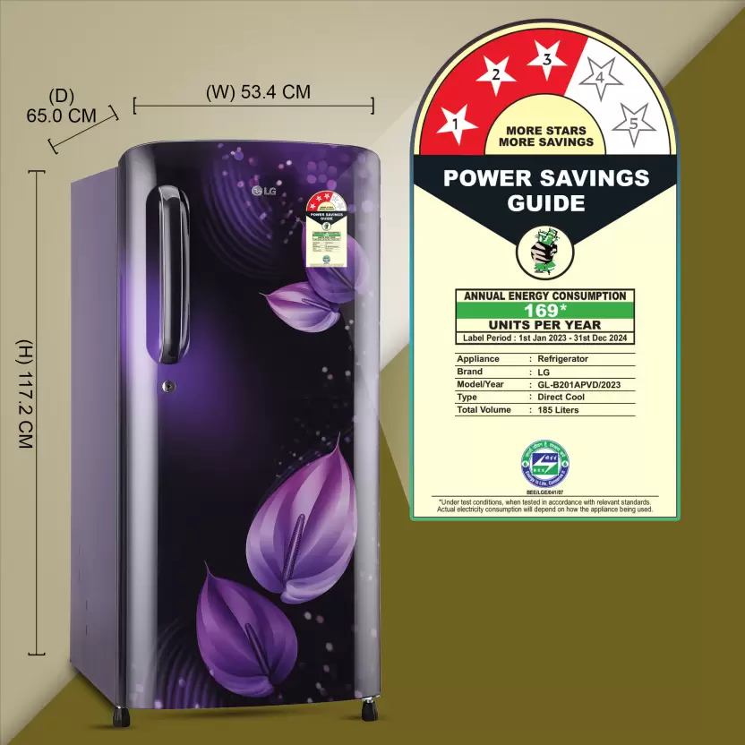 LG 185 L Direct Cool Single Door 3 Star Refrigerator with Moist ‘N’ Fresh (Purple Victoria, GL-B201APVD)